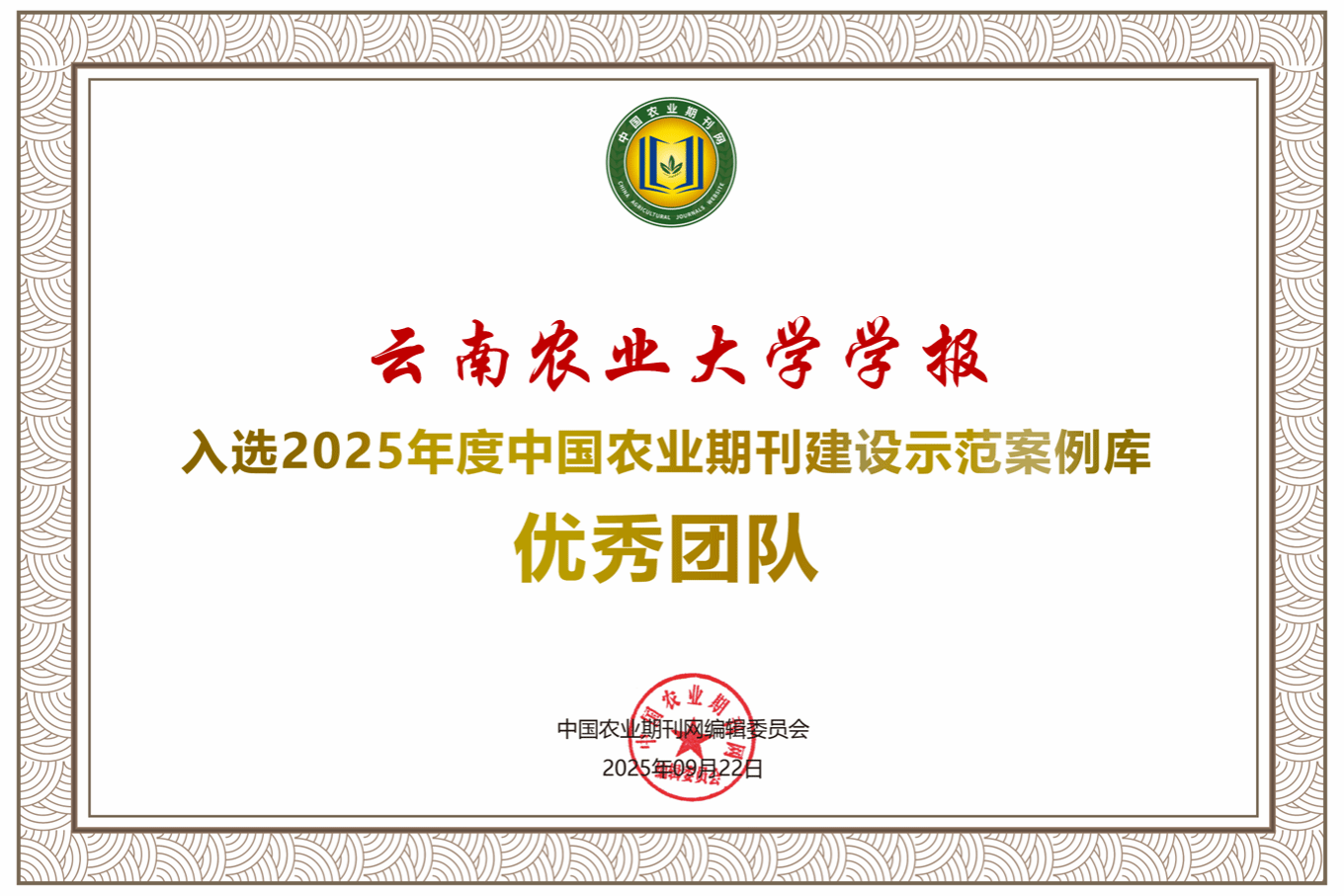 《云南农业大学学报》喜获2025年度中国农业期刊多项荣誉