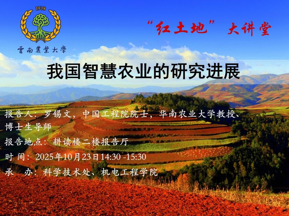 10月23日“红土地”大讲堂:我国智慧农业的研究进展