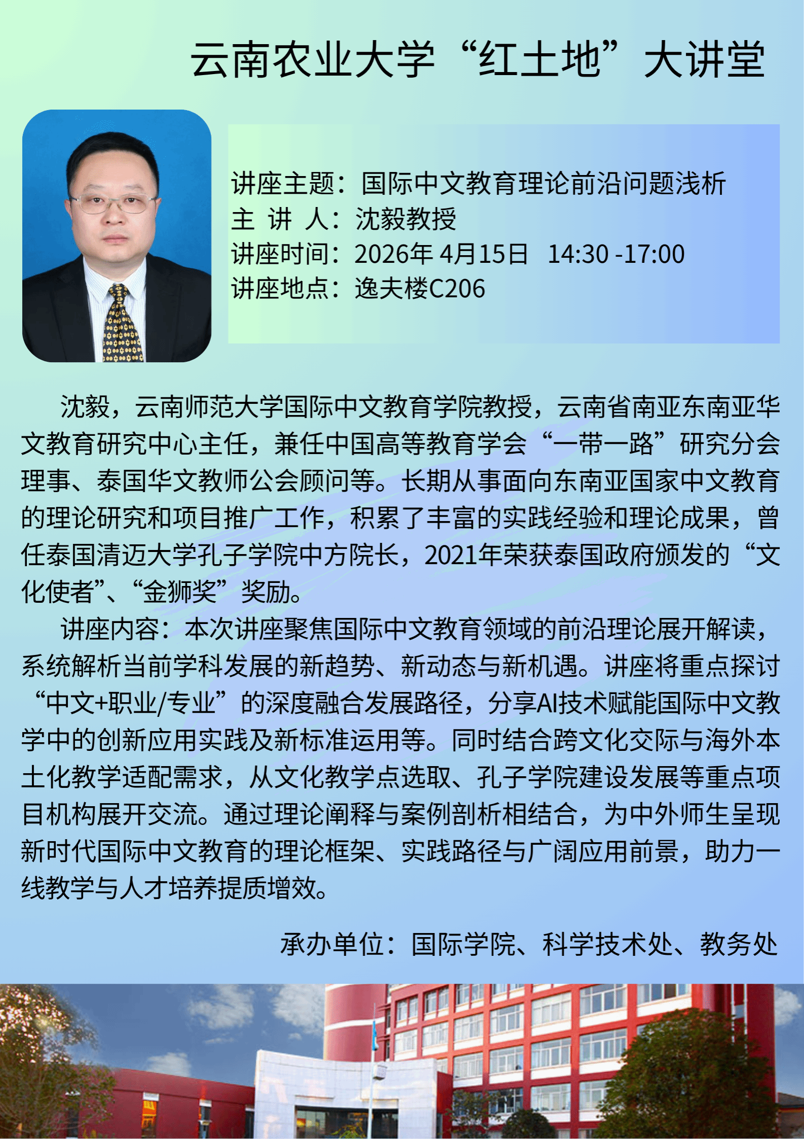 4月15日“红土地”大讲堂:国际中文教育理论前沿问题浅析