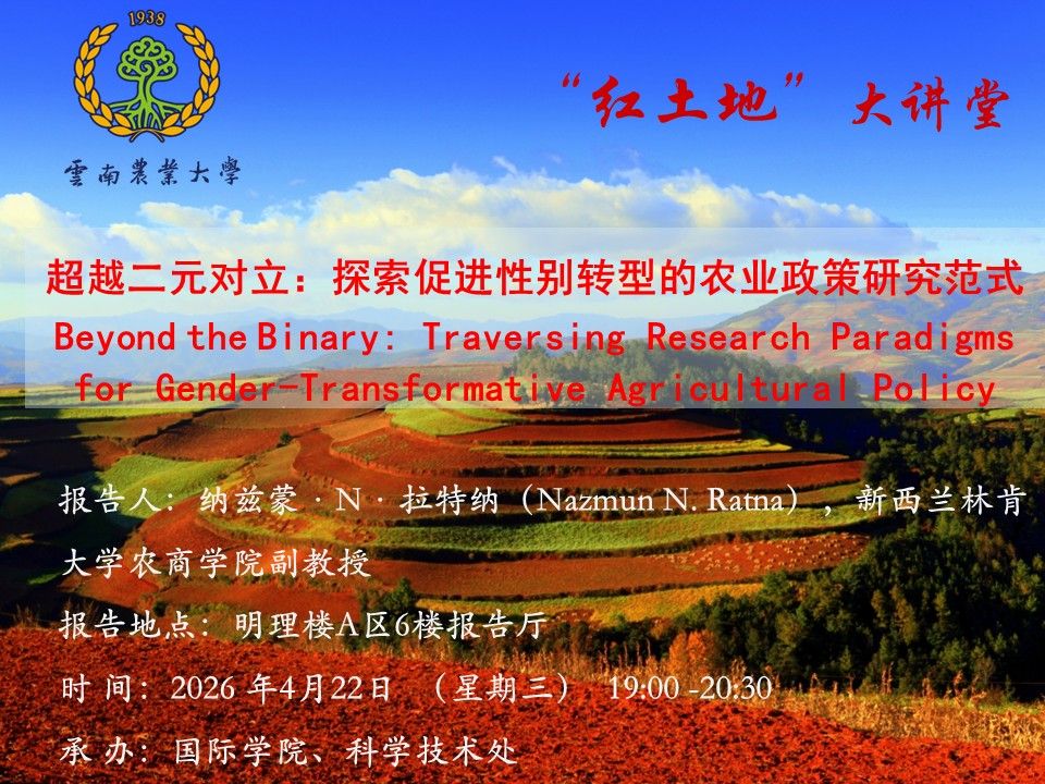 4月22日“红土地”大讲堂:超越二元对立:探索促进性别转型的农业政策研究范式