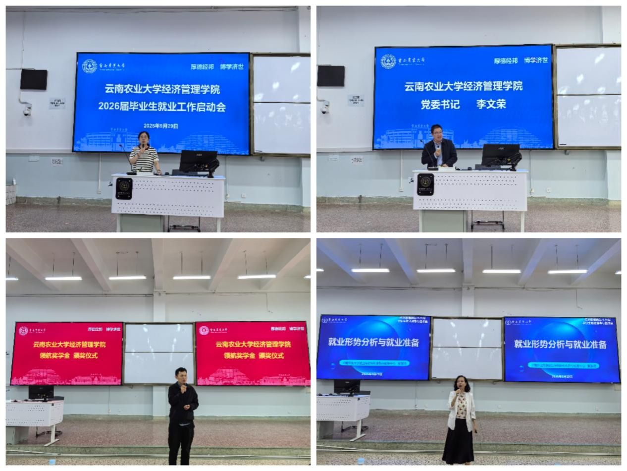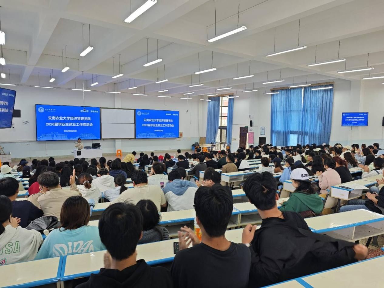 本站消息 9月29日下午,经济管理学院在明理楼阶梯教室举办2026届毕业生就业动员大会,学校就业与创新创业指导中心主任张东艳、学院党政相关负责领导、毕业班辅导员及2026届全体毕业生参加会议。会议由学院党委副书记杨敬雅主持。