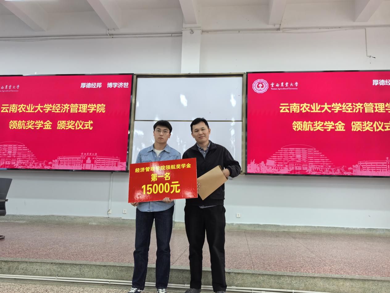 会议宣读了《经济管理学院领航奖学金实施办法》,并举行首届“领航奖学金”颁奖仪式。新农村发展研究院专职副院长刘同山为获奖学生颁奖。