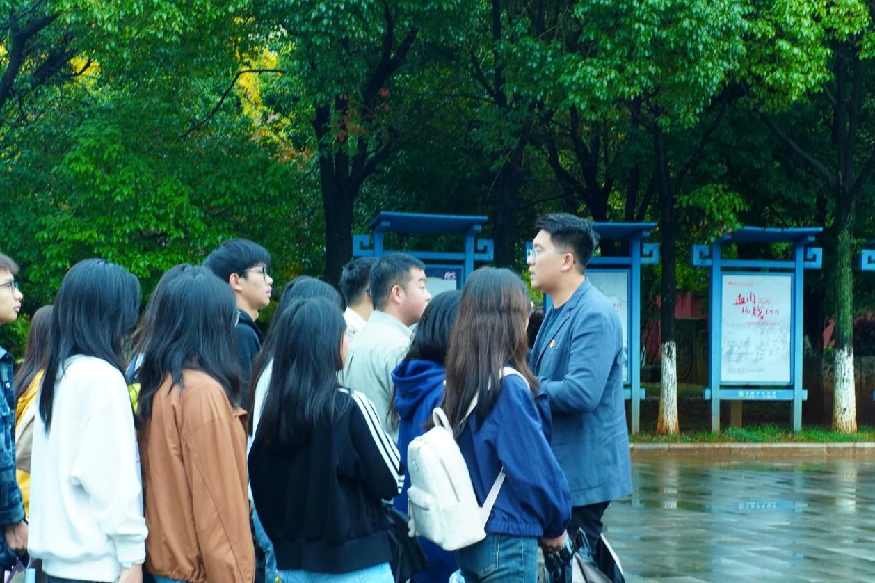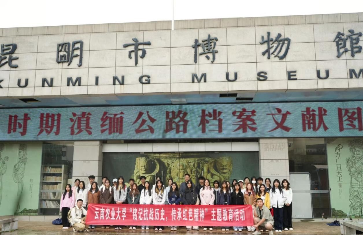 参观结束后,师生在博物馆前,举行“行走的思政课”。校易班指导老师赵琰领学习近平总书记在纪念中国人民抗日战争暨世界反法西斯战争胜利80周年大会上的重要讲话精神,结合滇缅公路“一寸山河一寸血”的筑路史诗,用“青春、信仰、使命”三个关键词,勉励青年把红色江山守护好、建设好,激励大家把抗战精神转化为“强国先强农、农大作先锋”的奋进动力,在乡村振兴主战场续写无愧于先烈、无愧于时代、无愧于青春的崭新篇章。