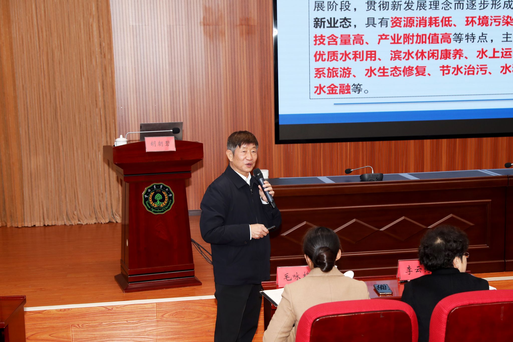 胡朝碧从“十四五”规划中云南水利改革发展成效、全面推进“厅校”合作、涉水新业态背景与意义、涉水新业态发展基础、开发利用总体思路、研究方向与实践等方面,为师生们作了全面系统的阐释。整场报告主题鲜明、全面系统、内容翔实,既有理论讲授,又有实践解读,具有很强的启发性和指导性。