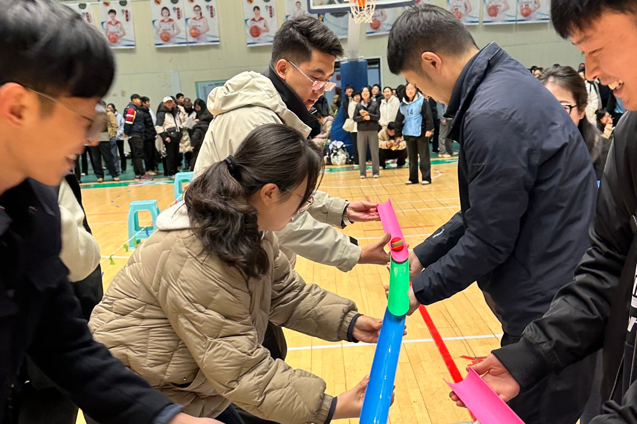 校工会精心策划了教职工系列活动,包括八段锦表演、旱地龙舟、珠行万里接力、篮球投篮计数、抢种抢收接力、垒球投准、同心鼓计数、团体拔河等集体趣味运动项目,这既考验身体素质与反应能力,更注重团队默契与协作精神。赛场上,教职工们褪去讲台上的严谨,在欢声笑语中并肩作战,展现了新时代教育工作者积极向上、团结奋进的精神风貌,进一步增进了同事之间的凝聚力。