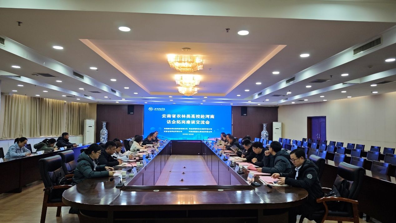 在河南省新乡市,工作组一行抵达河南科技学院,与校方举行专题座谈会。双方围绕本科人才培养模式创新、产教融合机制构建、就业服务体系优化等核心议题展开深入研讨,积极分享各自在相关领域的实践经验与成功做法,为后续深化合作奠定了思想基础。座谈会后,工作组与河南新汉博生物科技有限公司、河南普瑞科伯乐兽药有限公司、河南百农种业有限公司、河南省丽星亿源食品有限公司等本地涉农企业开展就业供需对接交流。会上重点围绕企业人才需求导向、云南省农林类高校毕业生专业结构与就业意向等内容进行精准对接,工作组诚挚邀请各企业赴云南农林类高校开展实地走访与专场招聘活动,搭建校企人才供需直通桥梁。