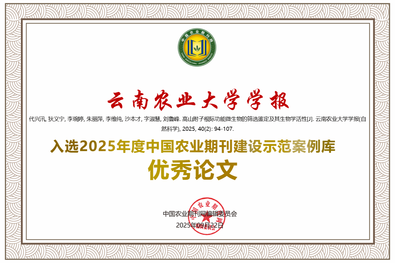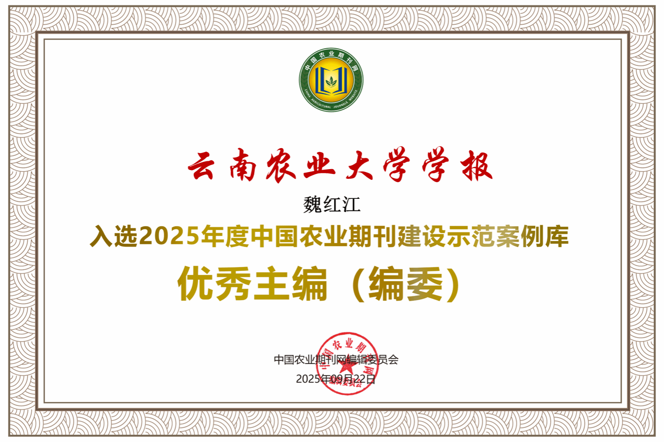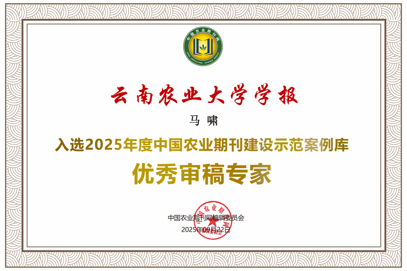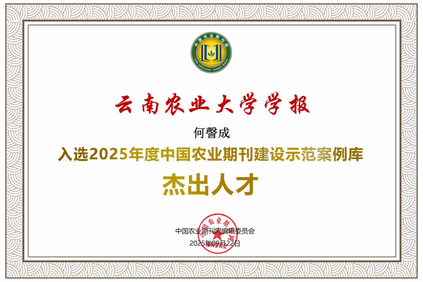 《云南农业大学学报》喜获2025年度中国农业期刊多项荣誉