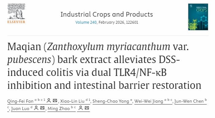 学校范青飞博士团队发现傣药植物麻欠树皮提取物通过抑制TLR4/NF-κB通路与修复肠屏障缓解溃疡性结肠炎