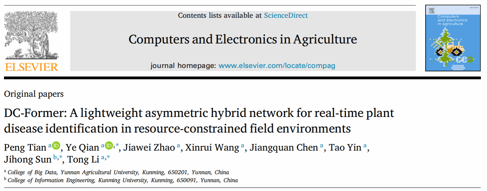 学校钱晔教授团队在农林领域国际期刊发表植物病害识别研究成果