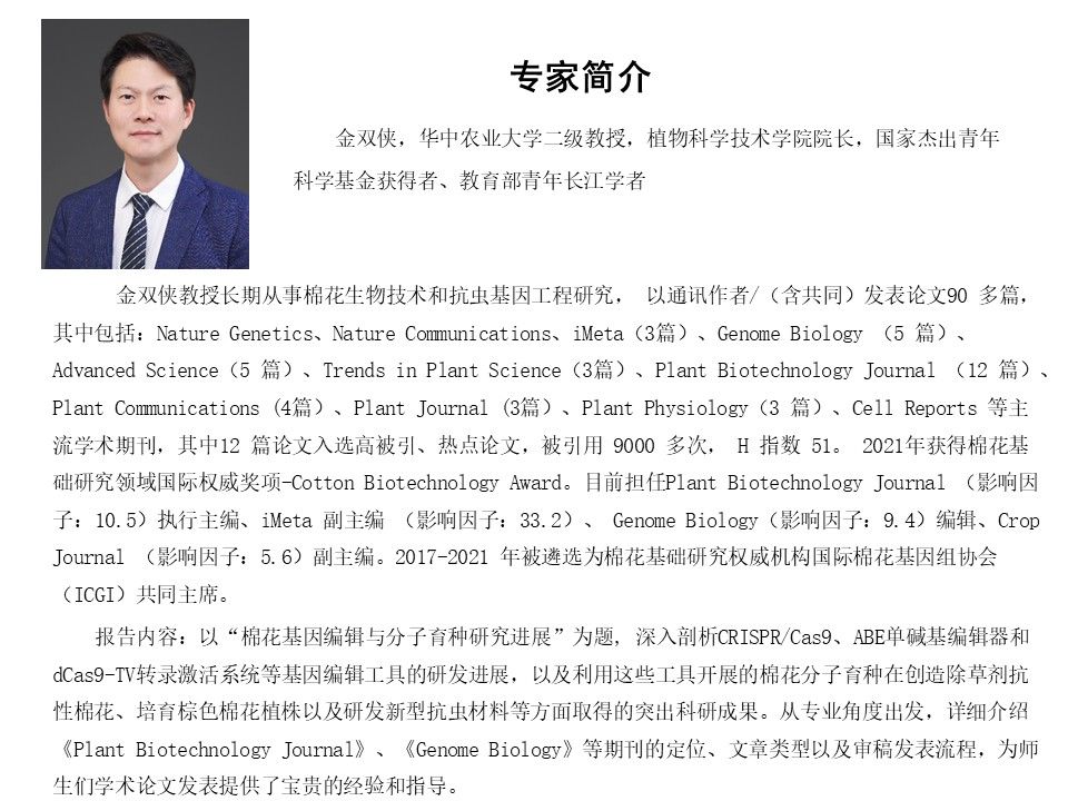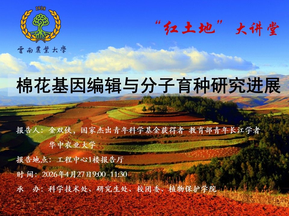 4月27日“红土地”大讲堂:棉花基因编辑与分子育种研究进展