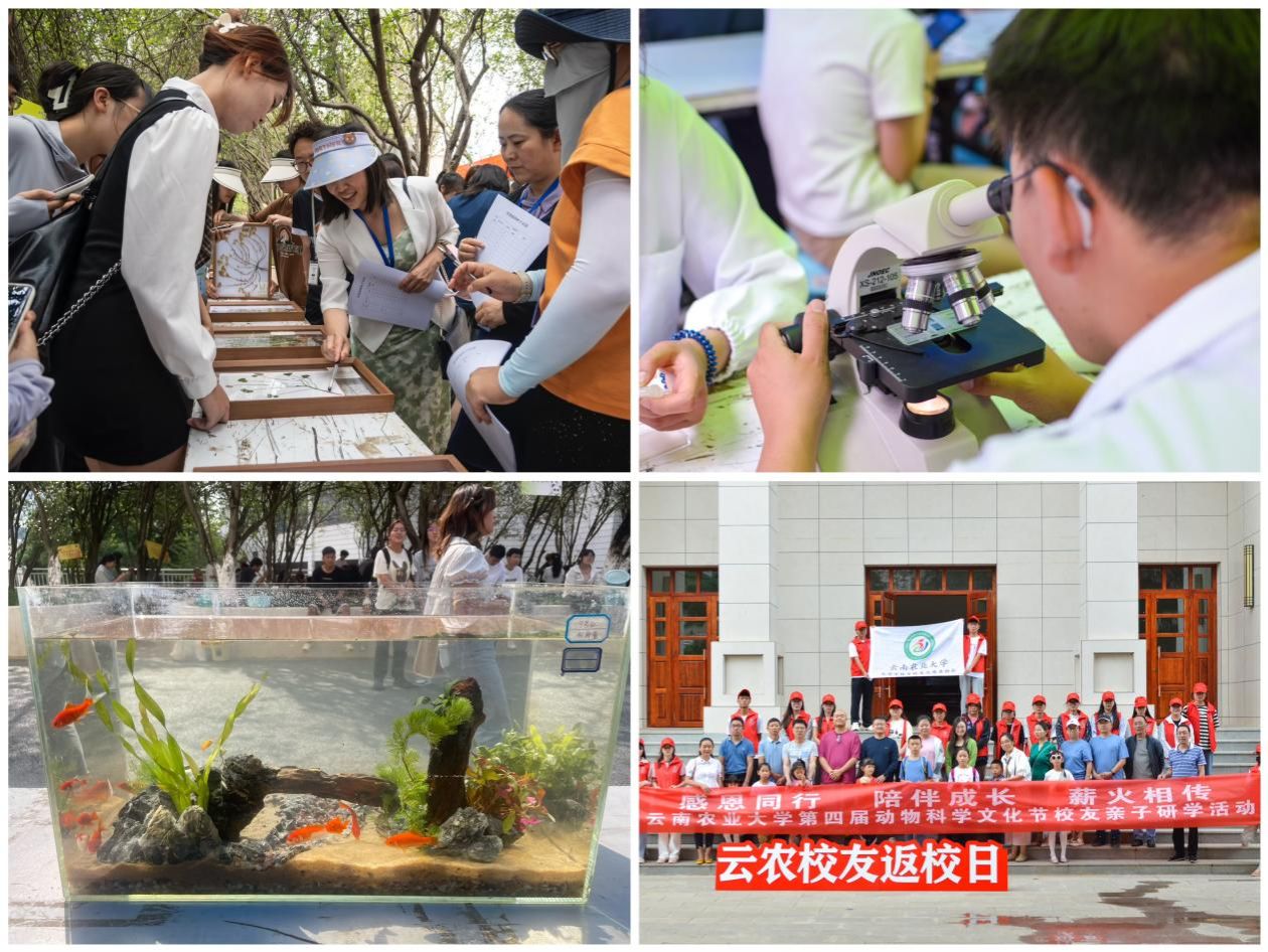 文化节由专业技能大赛、珍稀动物科普展、互动体验三个模块构成。技能大赛分为鸡的精液采集及品质检测、饲料原料快速识别与掺假鱼粉的鉴定、草类植物标本制作及草类植物种子识别、水族箱造景、蜜蜂标本制作及蜂蜜品鉴5个项目,由专业老师担任评委,评委从参赛队伍的操作技能、理论知识、创新能力等方面进行全面考核并给出评分。在科普展区,展出了全球部分具有代表性的珍稀动物及云南“六大名猪”“六大名牛”等特色畜禽种质资源。同时,现场还设置了“蛋生梦想”鸡蛋彩绘、微型鱼缸造景体验、作物种子识别、蜂蜜评鉴、动物知识问答等互动体验活动,让前来参加活动的校友家庭感受到了动物科学的魅力。