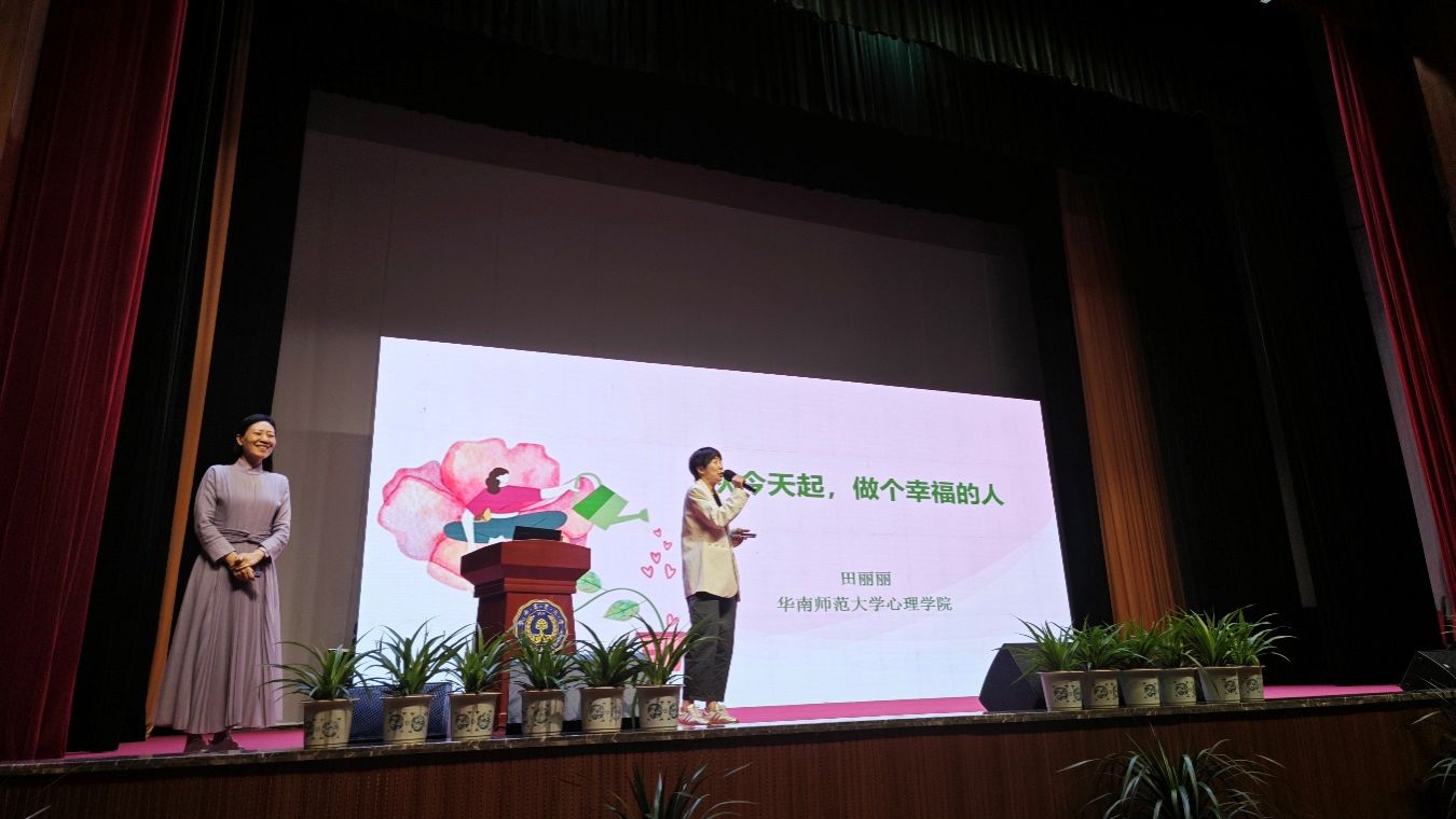 培训由华南师范大学心理学院应用心理学系主任,中国心理学会认定心理学专家田丽丽教授担任主讲。田丽丽教授从“什么是幸福?”“什么让我们幸福?”两个问题出发,引发师生对幸福心声的思考,阐述了幸福的相关定义及影响因素,并就如何将习得性无助转换为习得性乐观提供了诸多方法。现场气氛热烈,师生纷纷表示听完讲座后对如何“获得幸福”“做个更幸福的人”有了信心和实质性的努力方向。