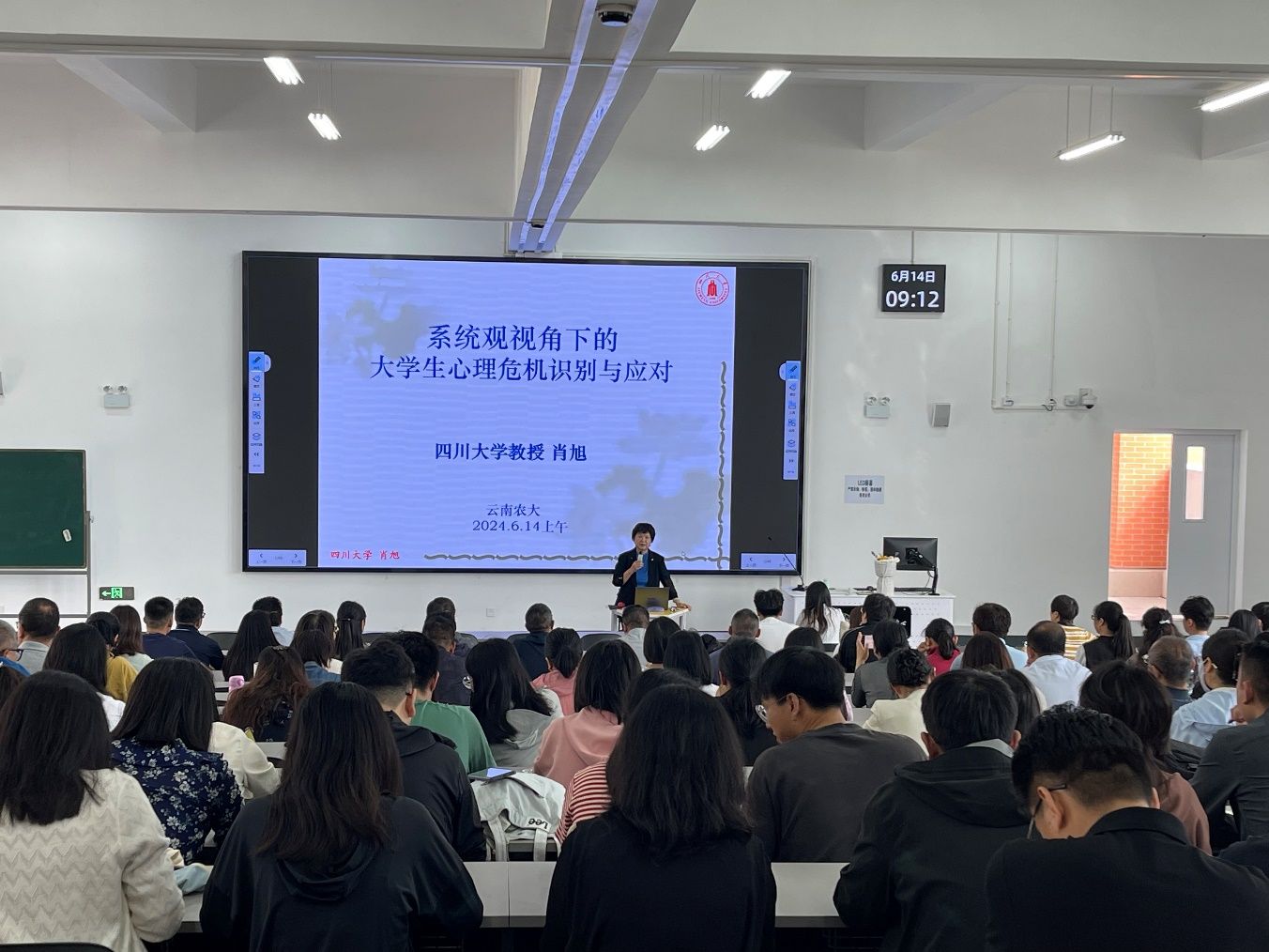 “耘心学堂”第九期讲座以“系统观视角下的大学生心理危机识别与应对”为主题,参训人员为全体专兼职辅导员、班主任。肖旭教授从危机的定义、系统观的概念引入,讲述危机事件的处置需要由多系统、多部门协同配合,给参训人员带来大学生心理危机识别和危机的系统式应对等实用性策略。
