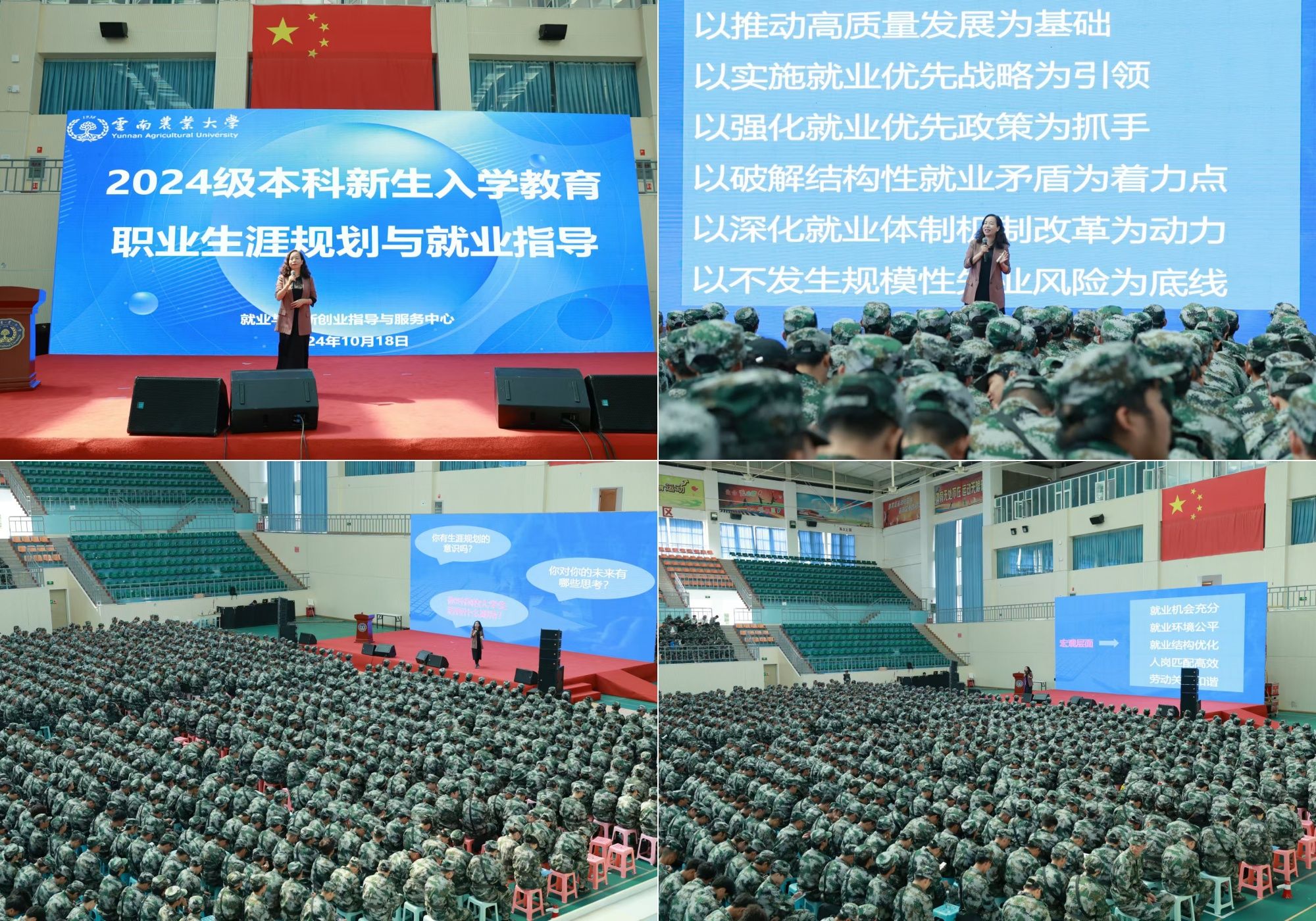 本站消息 为进一步帮助2024级本科新生激发和提高职业生涯规划的积极性、主动性,明晰大学阶段的职业发展方向,引导树立正确的成才观、职业观、就业观,10月18日上午,学校就业与创新创业指导服务中心在西校区体育馆,面向全体2024级本科新生开展入学教育。就创中心张东艳主任以“预见更好的自己”为主题,开展了大学生职业生涯规划与就业指导专题讲座,校本部共4300余名本科新生参加了讲座。