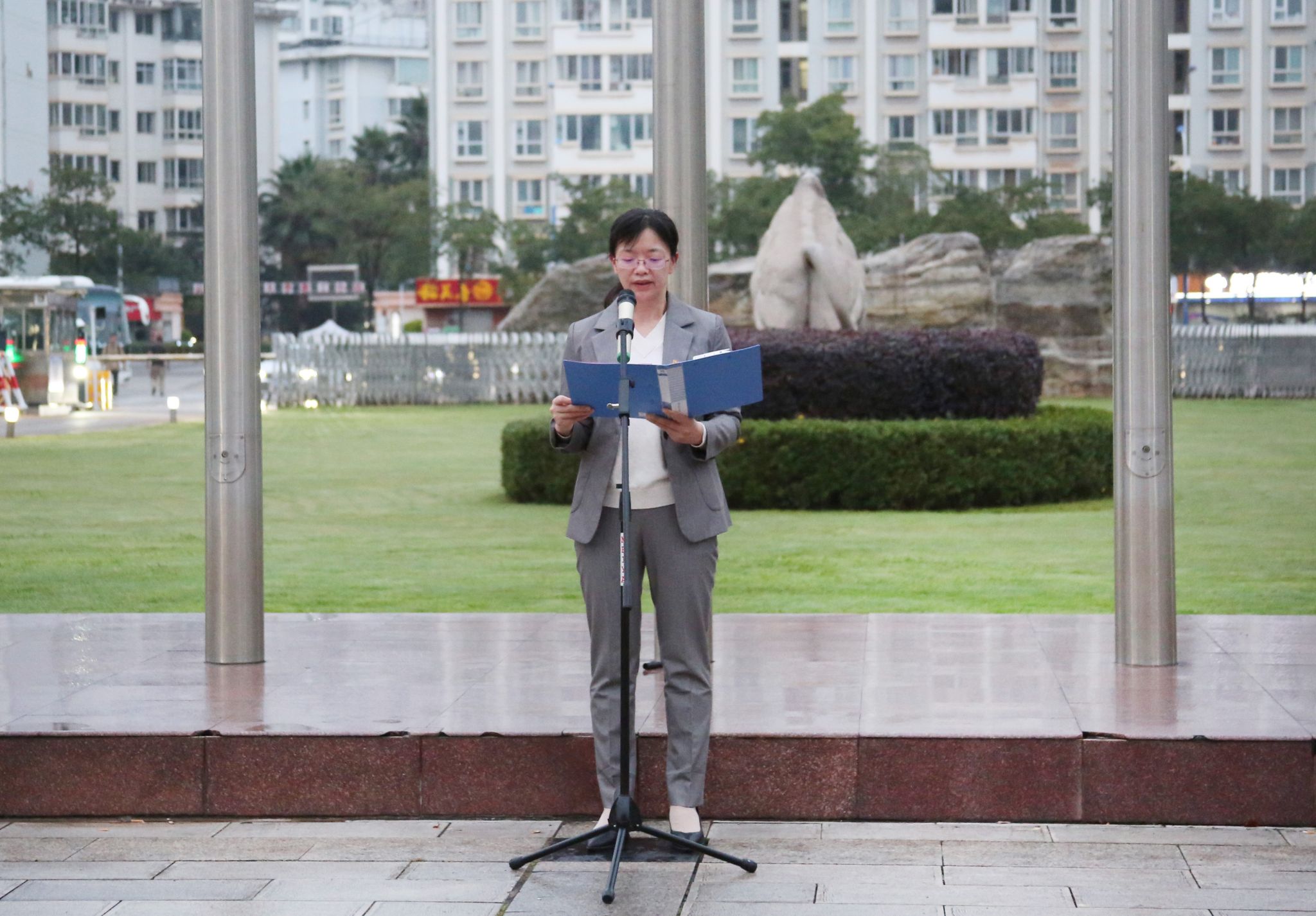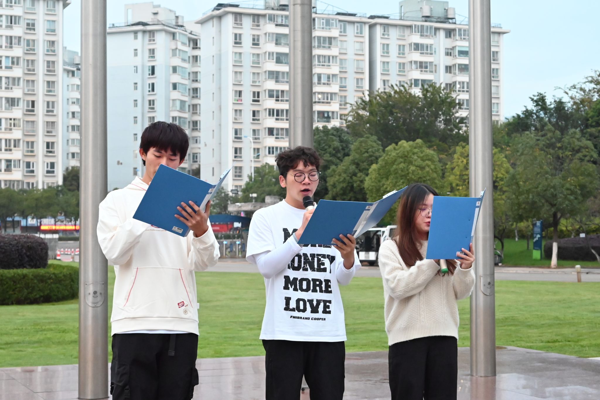 学院学生代表进行了爱国主题朗诵《国旗下,青春誓言》。发出“以知识为剑,以信念为盾,勤学不辍,勇攀高峰,为祖国的明天奋斗不息,共筑辉煌”的响亮青春誓言。随后,升旗仪式在学院合唱团领唱、全体师生齐唱的《歌唱祖国》嘹亮歌声中圆满结束。