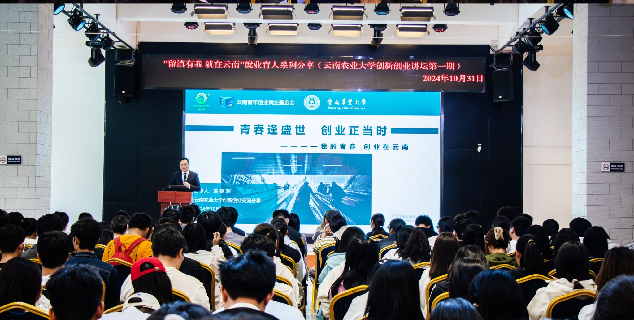 本站消息 为拓宽学生的创新视野,培养创新思维,提升创新意识,10月31日下午,学校在西校区众创空间宣讲大厅举办“留滇有我 就在云南”就业育人系列分享之“云南青年创业省长奖获得者”分享交流会暨创新创业讲坛第一期活动。本次讲座特别邀请到云南省青年创业就业基金会副理事长、中国青年创业导师、全国乡村振兴青年先锋、“云南青年创业省长奖”获得者翁健晖作专题分享,就业与创新创业指导服务中心以及来自各学院的300余名学生参加此次活动。