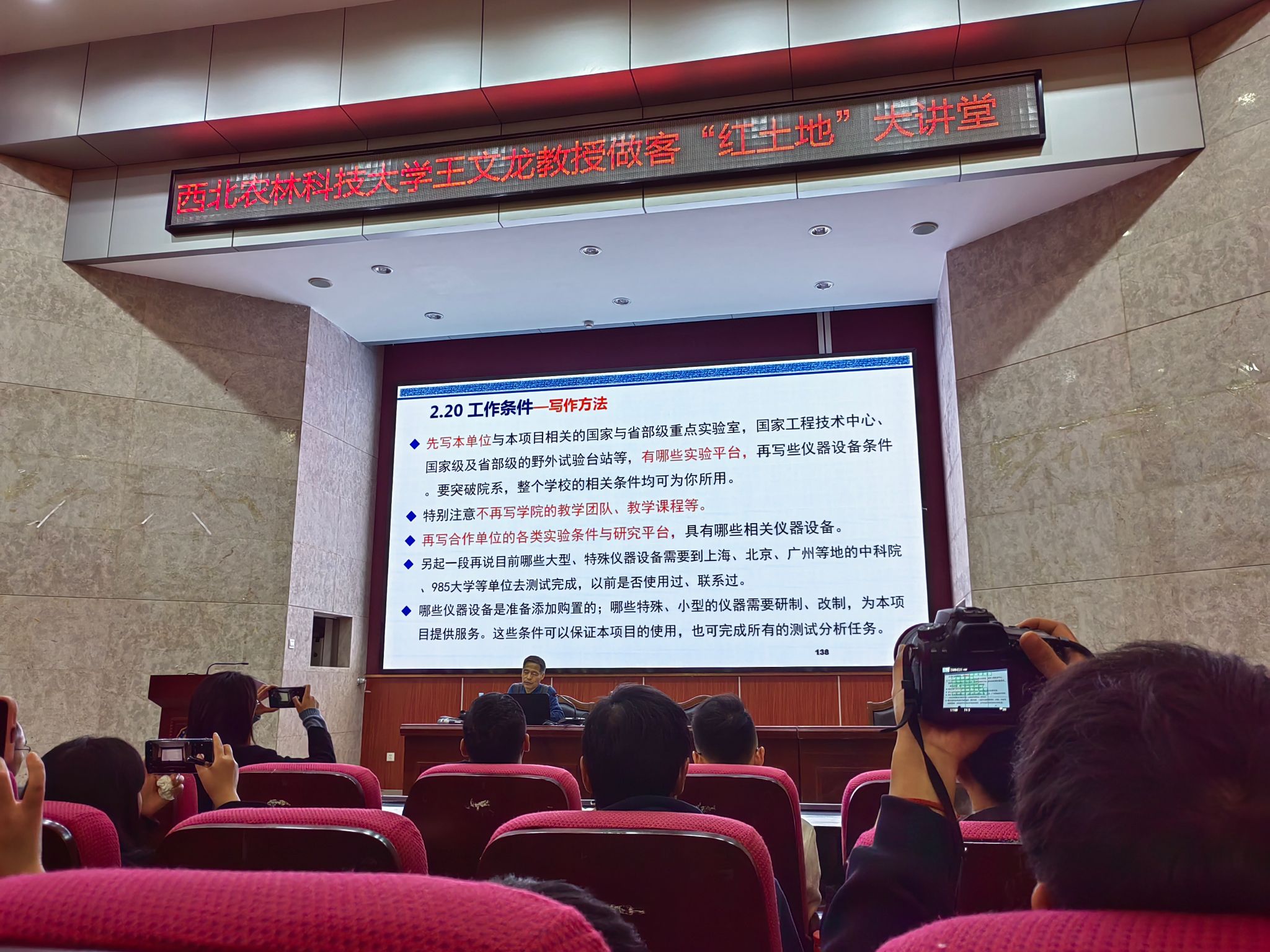 王文龙教授从国家基金申请书评审要点、国家基金申请书撰写技巧、应注意的重要问题三个方面展开,内容丰富,用详实细致的案例对每部分、每个知识点,逐一讲解,深入浅出,通俗易懂,具备系统性、实用性与可操作性,可有效解决申请者理解认识上的误区与偏差,以及在申请书撰写过程中遇到的各类疑难与困惑,切实提高申请书的质量。在互动环节,王教授细心解答了老师们在个人基金申报中的困惑。