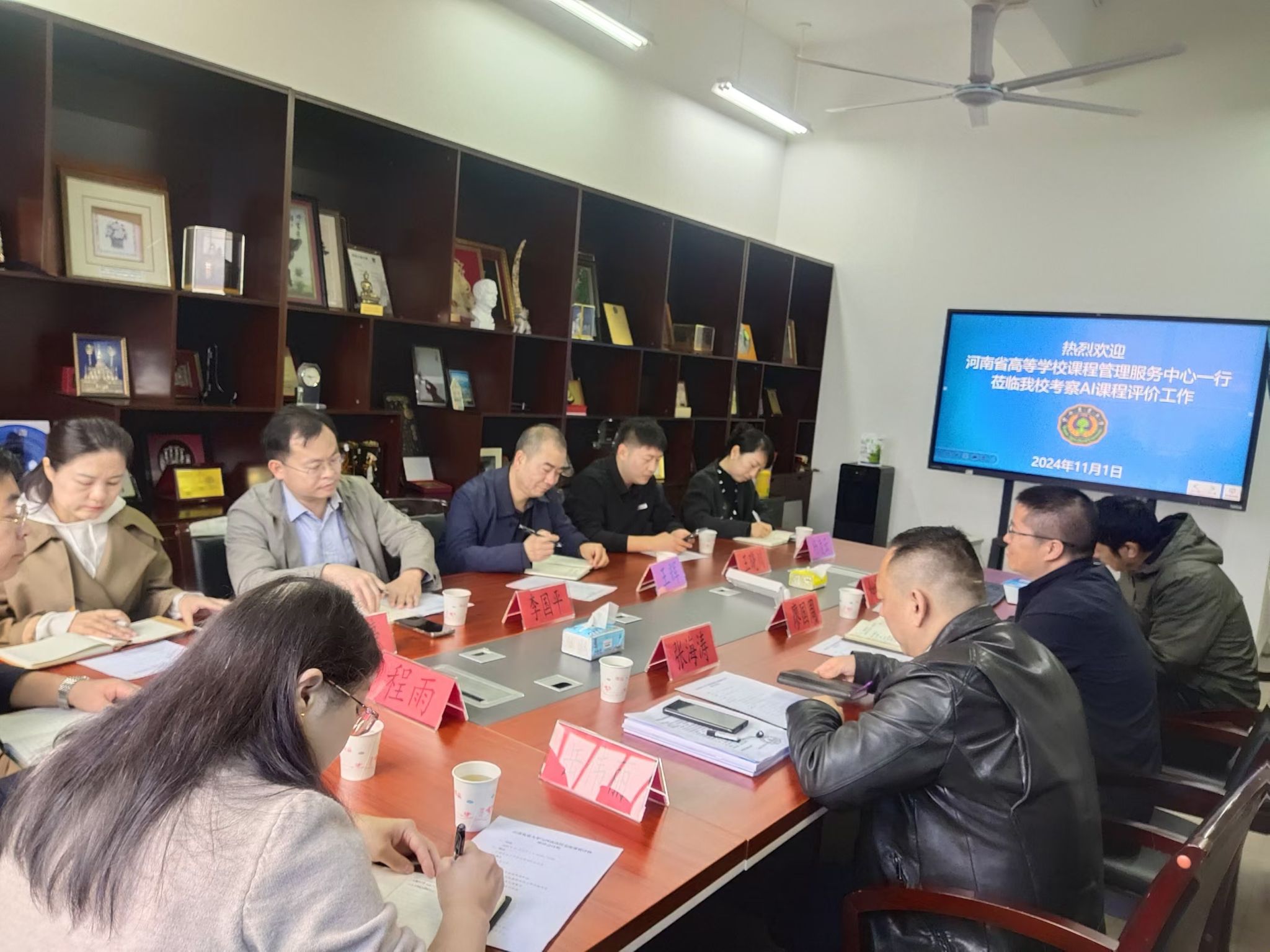 本站消息 11月1日,河南省高等学校课程管理服务中心主任王辉一行,到学校开展课程评价工作调研交流。教学质量监控与评估中心副主任廖国周、课程中心相关人员参加了此次调研交流活动,会议由教学质量监控与评估中心副主任张海涛主持。
