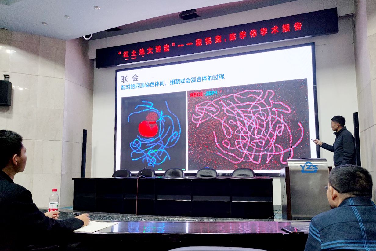祝宽教授深入探讨了遗传学的几个问题。祝宽教授结合课题组的精彩研究工作,对染色体配对、联会、重组和倒位等问题进行了全面深入的剖析,使会场的师生对细胞遗传学的知识有了新的了解,丰富和拓宽了同学们对现有遗传学知识的认知。