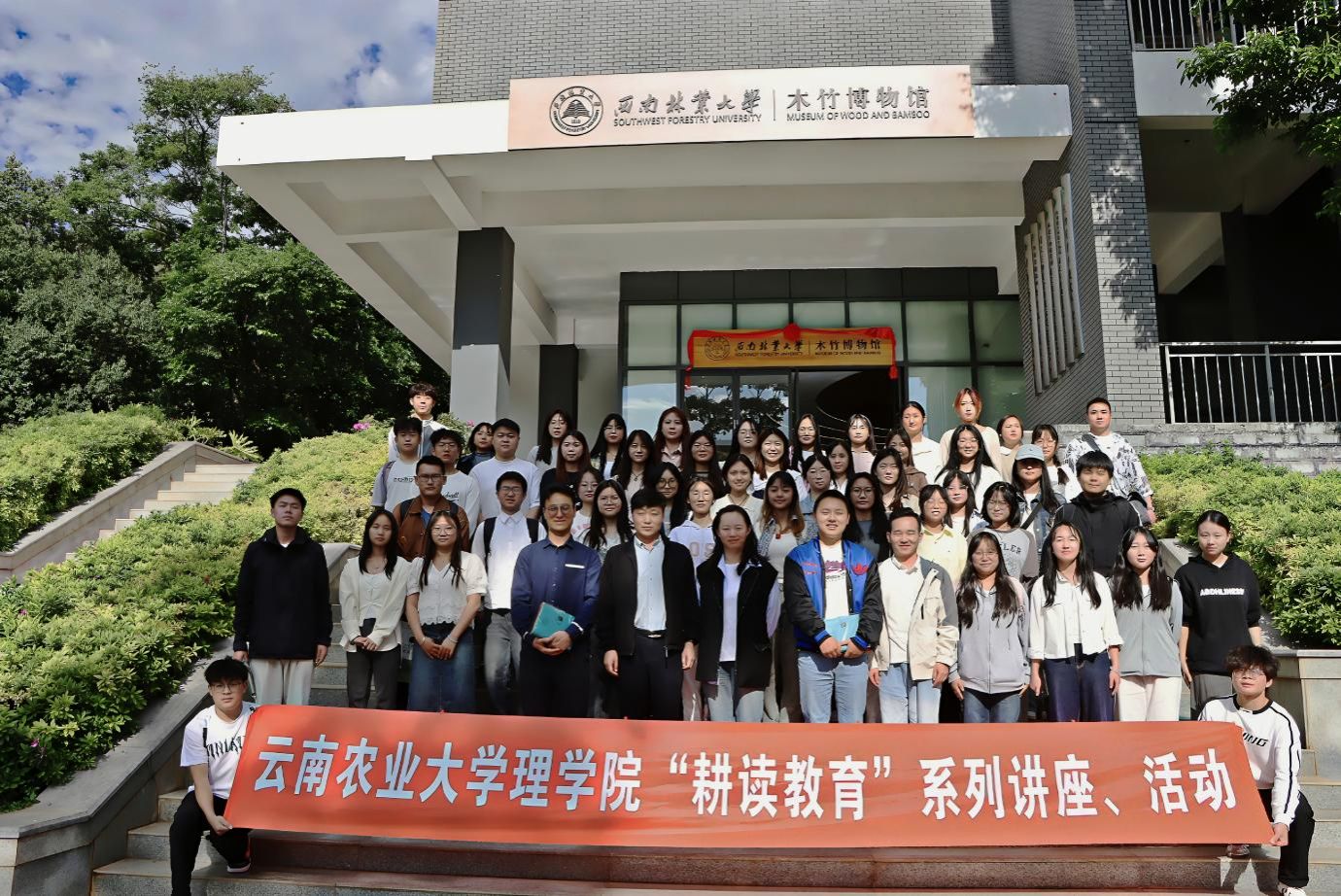 本站消息 为深入拓展学生的实践应用能力,弘扬耕读精神, 4月16日,理学院团学干部、学生党员赴西南林业大学木竹博物馆开展耕读教育。