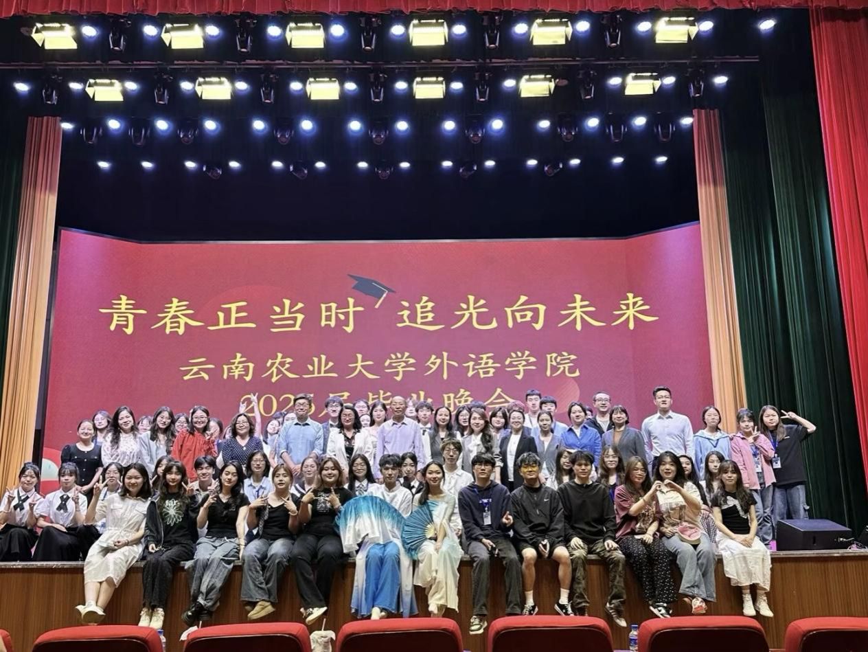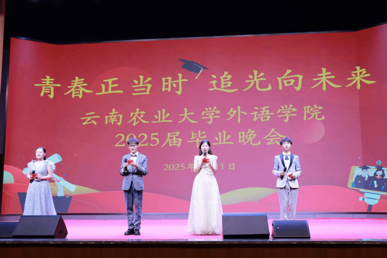 本站消息 5月11日晚,外语学院以“青春正当时 追光向未来”为主题在校友会堂举办2025届毕业生毕业晚会。学院领导、科室系部负责人和毕业班班主任、辅导员以及全体毕业生、在校生代表参加晚会。
