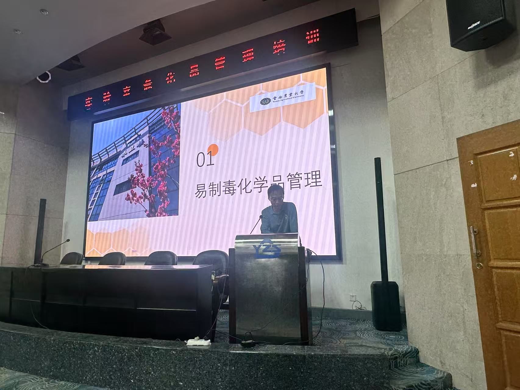 会议邀请到云南省高等学校实验室安全检查专家组专家卜玉涛,结合典型案例,从危险品采购存储、使用规范、废弃物处理等环节,讲解实验室危化品管理要点与难点,呼吁师生养成 “事前检查、事中规范、事后清理” 的操作习惯。参会师生就危化品台账管理、应急处置流程等问题提问,卜玉涛专家耐心专业解答,现场交流热烈有序,师生获益良多。