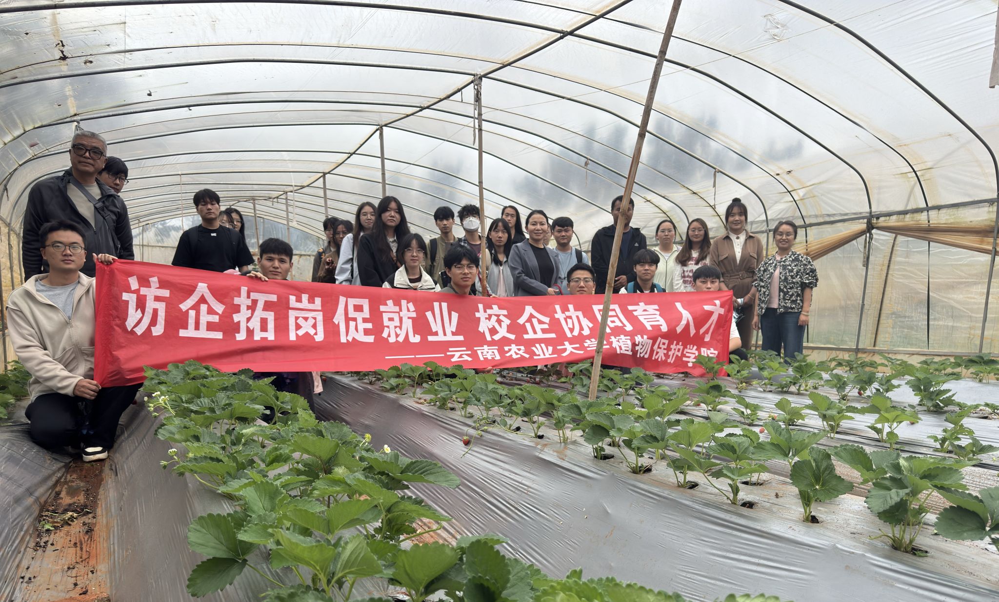 本站消息 10月16日,植物保护学院党委副书记李春艳率师生代表赴云南骄宇科技专业合作社、昆明初野农业家庭农场,开展 “大棚课堂” 暨访企拓岗专项行动,推动就业指导与专业实践深度融合。