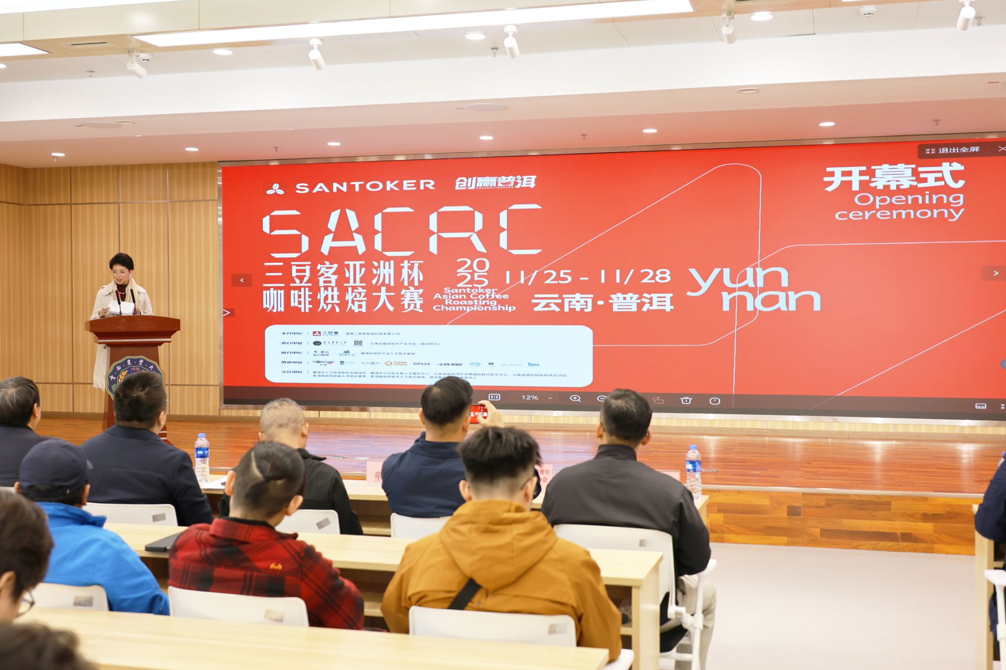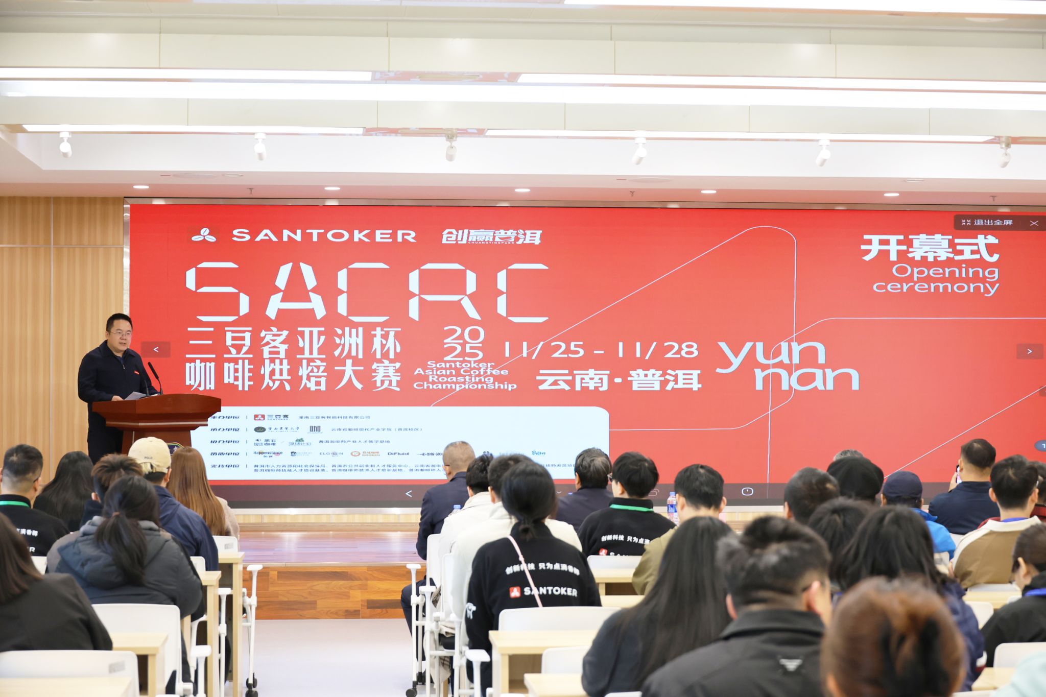 本站消息 11月25日,学校首届国际咖啡烘焙大赛暨2025三豆客亚洲杯咖啡烘焙大赛(SACRC)年度总决赛在热带作物学院举行,学院纪委书记闫刚,普洱市人力资源社会保障局党组成员、市就业中心主任童晓出席,相关单位、决赛选手及评委参加启动仪式。