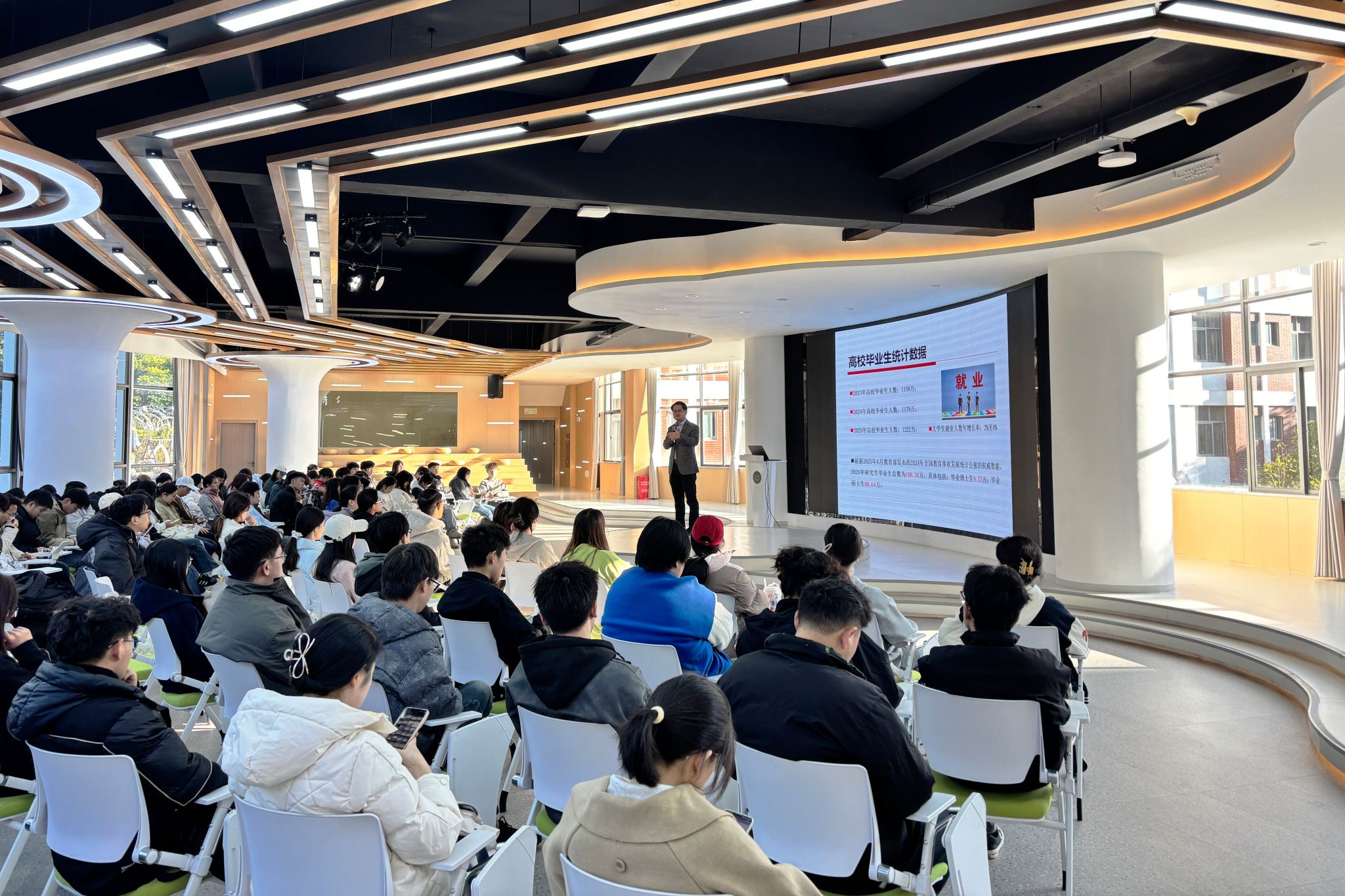 互动环节气氛热烈,同学们踊跃提问,雷松林老师逐一细致解答。此次讲座是马克思主义学院深化思政育人的生动实践,融合改革精神与就业指导,为培养新时代奋斗青年注入强劲动力。
