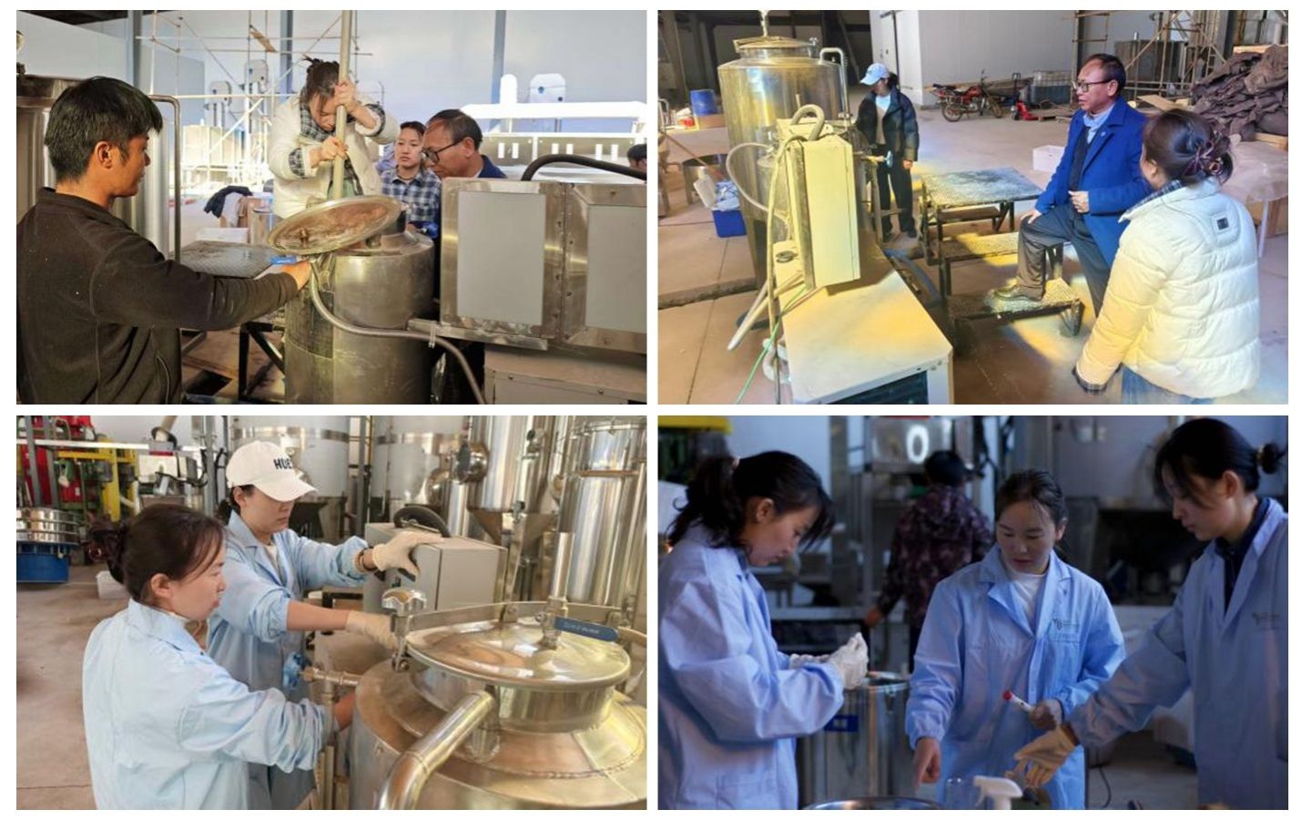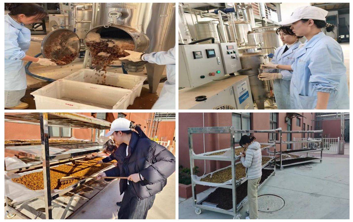 学院胡永金教授凭借丰富的理论知识和实践经验,为团队成员提供了专业的技术指导。从咖啡鲜果的筛选、发酵罐的操作,到发酵过程的监控和绿色脱胶技术的应用都给出精准的讲解和建议。团队成员在指导下更加精准地把握技术要点,确保中试生产的顺利进行。