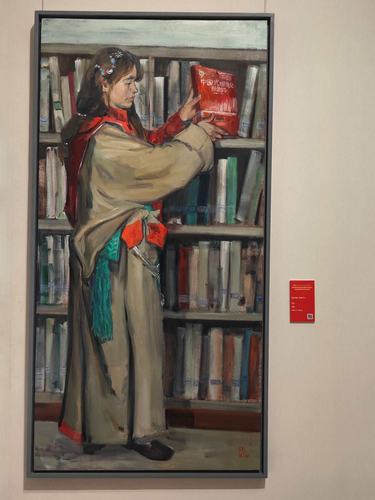 作品以云南农业大学身着民族服饰的学子在图书馆阅览的场景为创作题材,画面生动展现了云农学子勤学笃行的精神风貌。此次作品入选国家级展览,是学校美育教育与民族文化传承深度融合的生动体现。
