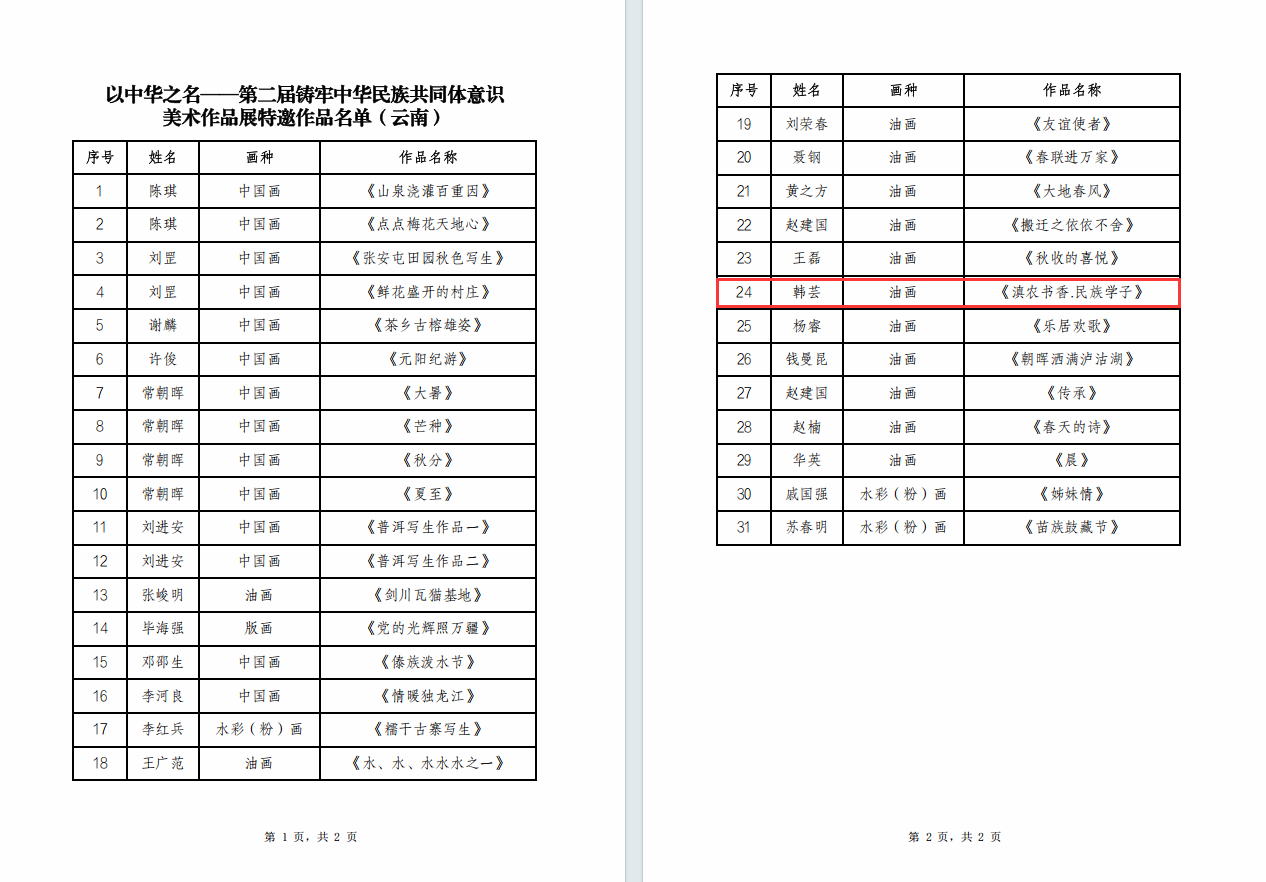 本站消息 近日,学校民进会员韩芸老师油画作品《滇农书香·民族学子》成功入选“以中华之名——第二届铸牢中华民族共同体意识美术作品展”。
