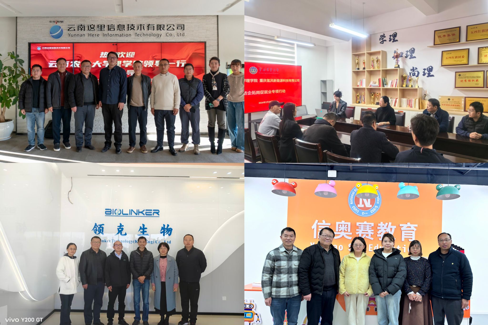 本站消息 为深入贯彻落实教育部、云南省及学校开展高校毕业生寒假促就业暖心行动的工作要求,理学院在寒假黄金期组织开展访企拓岗促就业专项行动。学院领导班子、系主任、专业负责人等带队走访昆明埃舍尔科技有限公司、云南鑫兴泽环境资源产业有限公司、云南这里信息技术有限公司、领克生物科技有限公司、云南兴昇达国际贸易有限公司等省内外14家用人单位,为2026届毕业生拓宽就业渠道。