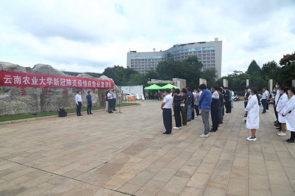 本站消息 开学之际,为切实做好新冠肺炎疫情防控工作,提高学校应对新冠肺炎疫情突发事件应急处置能力,确保老生安全返校和新生顺利入学,2022年8月26日下午,学校开展了“2022年秋季学期开学新冠肺炎疫情应急处置演练”,校长李永和,校党委副书记徐华,副校长朱书生、魏红江,云南省高原特色农业产业研究院副院长李国春,以及各综合部门负责人、学院分管学生工作负责人和在校学生代表参加了演练。