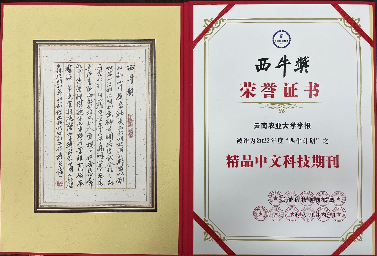 在开幕式环节举办了2022年度“西牛计划”入选项目发布仪式,共颁发了“西牛计划”之“精品中文科技期刊、优秀中文科技期刊、优秀创新平台、精品英文科技期刊、优秀编辑学论著”5个项目。《云南农业大学学报》荣获2022年度“西牛计划”之“精品中文科技期刊”。