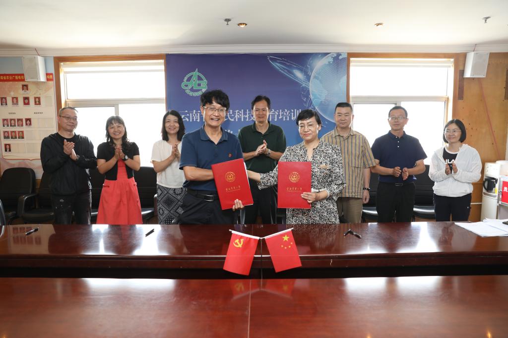 本站消息 2022年8月30日,在云南省农业广播电视学校,中标方云南农业大学与采购方省农业广播电视学校正式签订《云南省乡村产业振兴带头人培育“头雁”项目》政府采购合同。在签订合同之前,云南农业大学党委副书记、云南农村干部培训基地常务副主任雷建奕与云南省农业广播电视学校付晴岚校长等就项目合同、项目培训方案、服务方案、质量保障评价方案等方面作了深入交流。受李永和校长委托,云南农村干部培训基地杨金江教务长与付晴岚校长签订了采购合同。