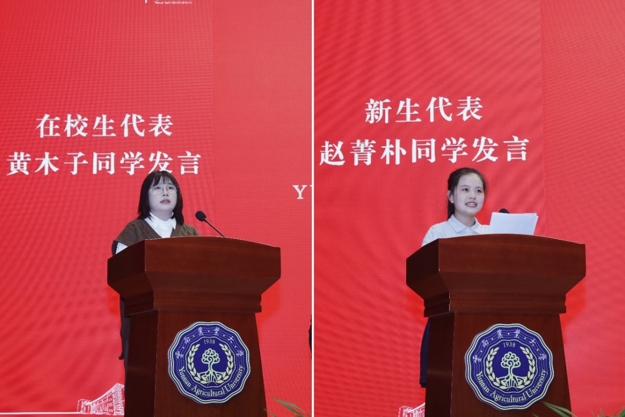 黎素梅勉励全体新生,学不可不弘道崇德,术不可不经世致用。希望同学们发扬“厚德博学、明理尚农”的精神,在云农留下属于自己的青春印记,成长为具备健全人格、宽厚基础、创新思维、全球视野和社会责任感的“云农人”,在民族复兴的道路上建立卓著功勋!在农业农村现代化和乡村振兴伟大事业中贡献智慧与青春力量!