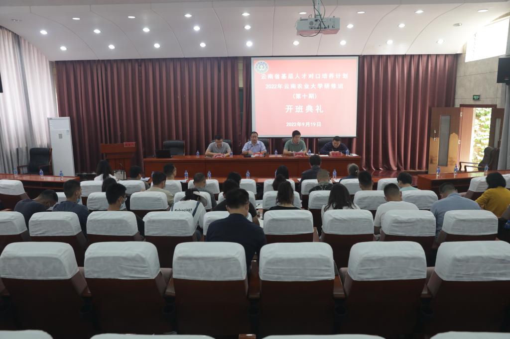 本站消息 2022年9月19日,云南省基层人才对口培养计划2022年云南农业大学研修班开班典礼在继续教育学院一楼报告厅举行。副校长孙海清、人事处相关领导、学员导师和全体学员参加了开班典礼。开班典礼由人事处处长严明杰主持。
