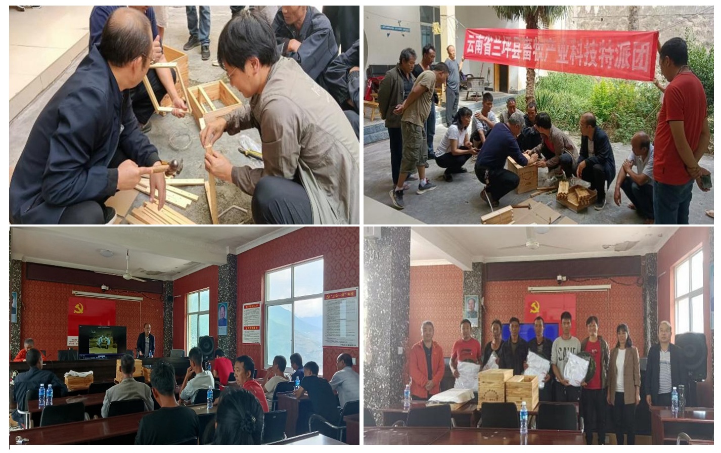 在兰坪县中排乡,多数农户具有养殖中蜂的优良传统,农户们养殖的中蜂多数都是原始传统养殖方式,虽然养殖规模近3000群,但蜂蜜的产量不高,品质也得不到保障。根据养殖户的实际情况,特派团针对农户在科学养蜂技术薄弱环节方面加强了理论指导和现场培训,让农户掌握了中蜂活框蜂箱的组装,中蜂过箱技术,蜂群的饲养管理,成熟蜂蜜的生产。同时,特派团向当地无偿赠送中蜂活框蜂箱30套、摇蜜机1台,20余套蜂衣、蜂帽等养蜂用具,用于支持当地的养蜂发展。