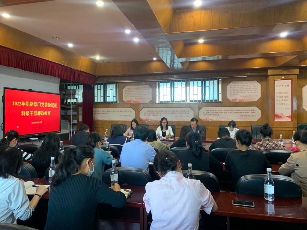 本站消息 为加强职能部门党委科级干部队伍建设,培养政治素质高、业务能力强、品行作风实、廉洁自律严的好干部,结合职能部门党委工作实际进一步深化落实“清廉学校”建设。2022年9月28日下午,职能部门党委开展“强化党性党规党纪教育,共筑清明政风作风校风”廉政教育,校党委副书记、职能部门党委书记雷建奕出席会议并讲话。职能部门党委相关负责人、新任科级干部、各党支部党员代表参会,会议由职能部门党委副书记兼纪委书记张萍主持。
