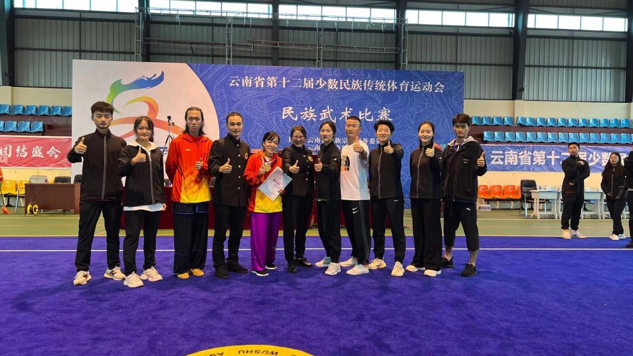 本站消息 近日,由云南省民族宗教事务委员会、云南省体育局主办的云南省第十二届少数民族传统体育运动会在丽江市如期举行。全省各州市代表队近200名少数民族运动员参与了比拼,我校武术运动健儿经过顽强拼搏,取得了3金1银的优异成绩。