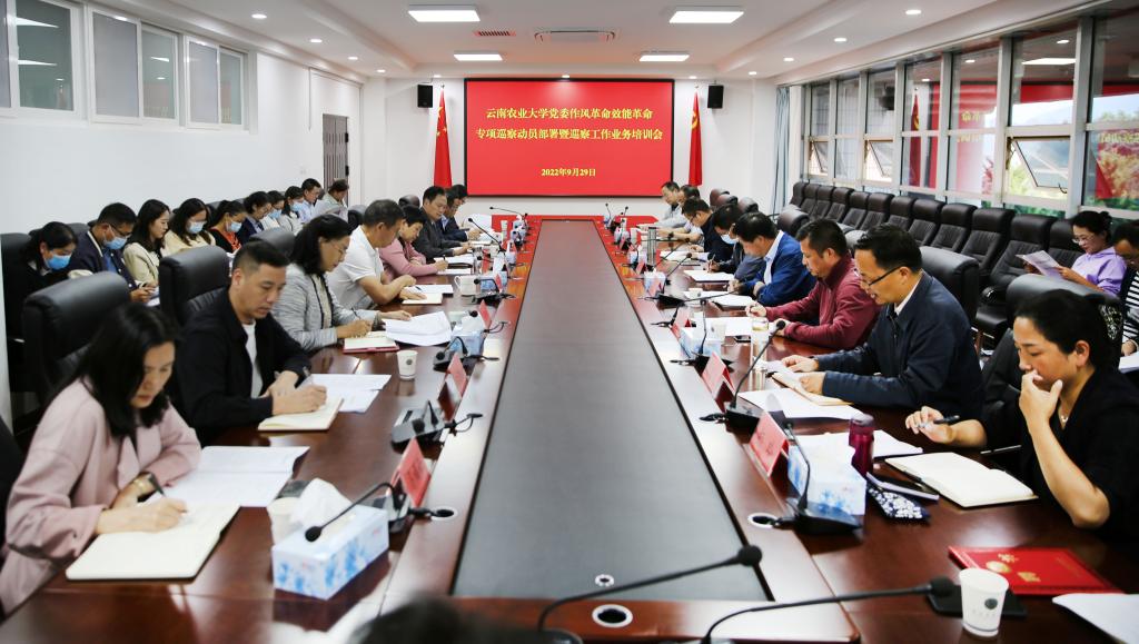 本站消息 2022年9月29日,云南农业大学在耕读楼301会议室召开作风革命效能革命专项巡察工作动员部署会。巡察工作领导小组组长、党委书记黎素梅同志出席会议并作动员讲话。巡察工作领导小组副组长、党委副书记雷建奕同志主持会议,校党委巡察工作领导小组成员,被巡察学院、部门分管联系校领导,巡察组全体成员,巡察办工作人员,被巡察学院、部门党组织主要负责人参加了会议。
