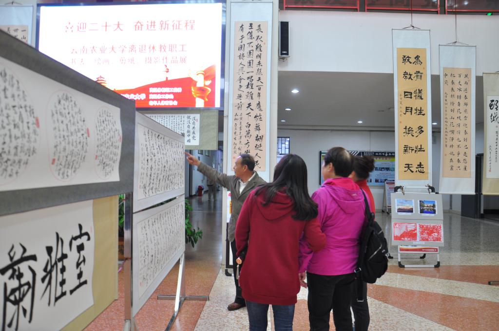 开展首日,校党委副书记徐华亲临展区,与离退休老同志共同观展。徐华希望广大老同志离岗不离党、退休不褪色,永远听党话、跟党走,建功新时代。老同志们纷纷表示,要继续保持积极向上的精神风貌,不断提升人文修养和精神境界,在新时代展现新风貌、体现新作为、践行新使命,以实际行动迎接党的二十大胜利召开。