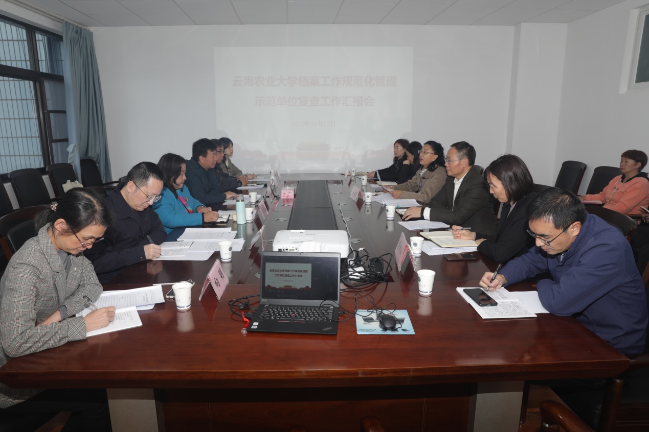 本站消息 为巩固档案工作规范化管理成效,2022年10月13日下午,省档案局副局长段俐娟、省教育厅二级巡视员卢明等一行6人组成的专家组对我校档案工作规范化管理进行复查和业务指导。校长李永和、省高院特色农业产业研究院副院长桂明英陪同专家一行实地调查、听取复查反馈,校党委办公室、校长办公室、财务处、图书馆(档案馆、农耕文化博物馆)等部门负责人及相关工作人员配合复查工作并参加复查汇报反馈会。