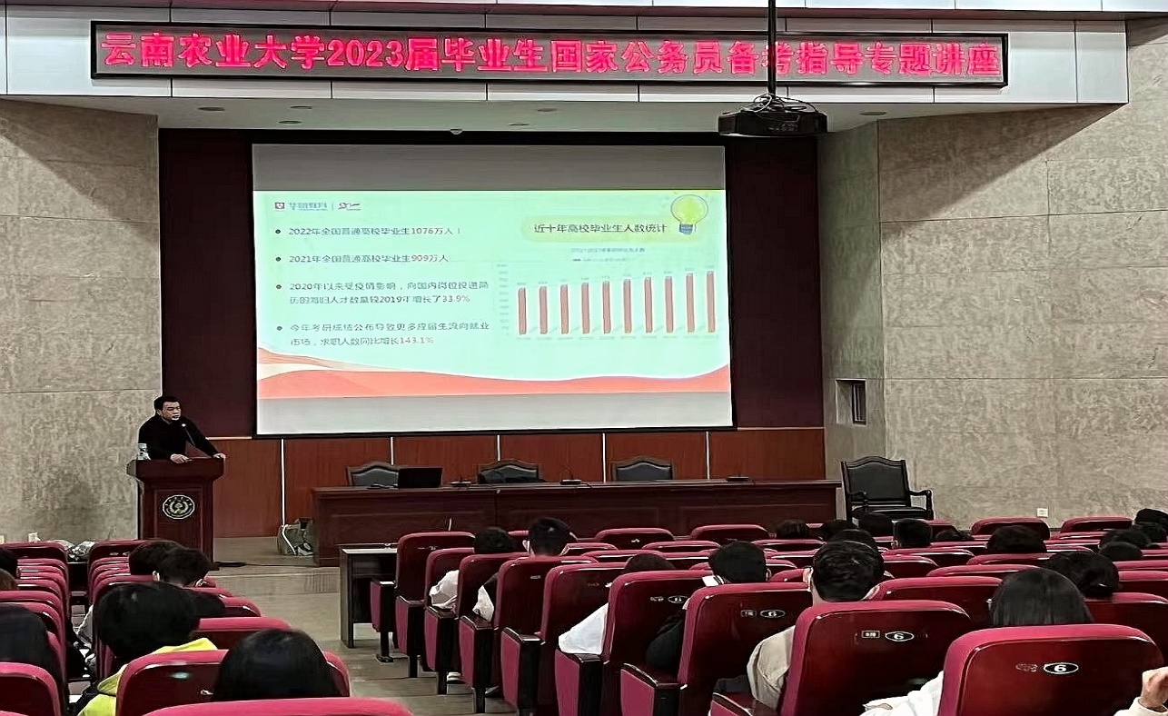 本站消息 为进一步提高2023届毕业生考试通过率,增强就业竞争力,2022年10月15日-11月4日,就业与创新创业指导服务中心先后开展2023年云南定向选调生考前冲刺及国家公务员备考指导专题讲座。作为学校2023届毕业生就业创业工作系列活动之一,本次活动采用线下公益课方式开展,全校近400余名符合条件、有意愿的2023届毕业生免费参加此次活动。