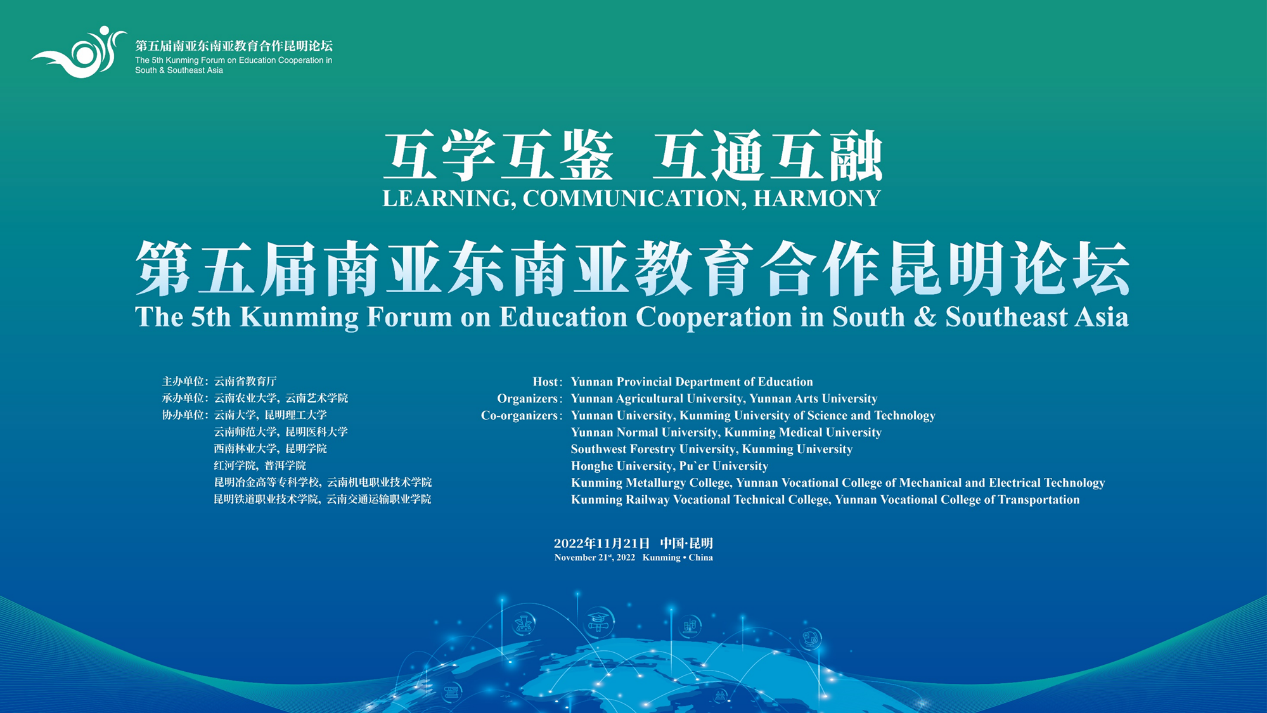 本站消息 2022年11月21日上午,由省教育厅主办、我校承办的“南博会”系列活动——第五届南亚东南亚教育合作昆明论坛主论坛在昆明滇池国际会展中心举办。来自13个南亚东南亚国家的教育部门和高校的200余位专家学者通过线上线下结合的方式,围绕“互学互鉴,互通互融”这一主题,就教育国际交流合作的新方向、新模式及如何推进云南省教育高水平对外开放等问题开展交流研讨。