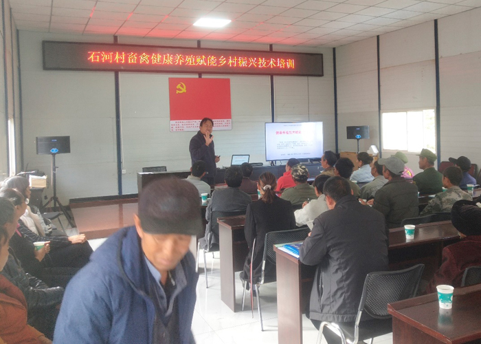 本站消息 为提高石河村农户养殖水平,促进畜牧产业发展,助力巩固拓展脱贫攻坚成果同乡村振兴有效衔接,近期,我校驻村队员充分发挥学校人才和科技优势,组织学校相关老师到石河村开展养殖技能培训和技术指导,石河村委会干部、养殖大户等60余人参加培训。