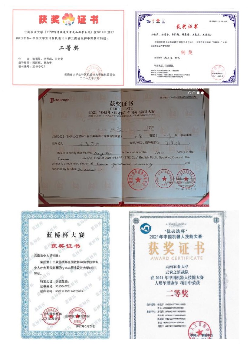 树牢“以学生为中心”的教学理念,加快推进课程思政建设,鼓励研究性教学改革。2021年,投入45万元建设机器人实验室;2022年,投入68万元建设电子技术实验室、计算机组成原理实验室和网络攻防实验室。主编全国高等农林院校“十三五”规划教材4部;申请教改项目7项,其中国家级2项,省级3项。2018年,获批省发改委“云南省绿色农产品大数据智能信息处理工程研究中心”。获批云南省重大科技专项2项——“农业大数据应用研究与开发”“基于大数据及人工智能的数字乡村治理及应用示范”,国家自然科学基金3项,累计合同经费5000余万元。发表学术论文110篇,三大检索收录17篇,出版科技著作2部,申请专利及软著38项。完成了两个二级硕士点的合格评估,重视研究生科研思维及能力培养,目前有云南省研究生优质课程建设项目1项。