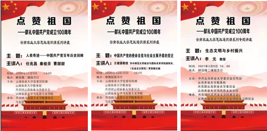 “以宣促教”,省级宣讲团成员2名,团省委青年讲师团讲师3人,云南农业大学青年讲师团10人。承担党的创新理论宣讲百余场,4人次青年教师在“云视网”、云南电视台“张桂梅大讲堂”“人民网”录制宣讲节目。