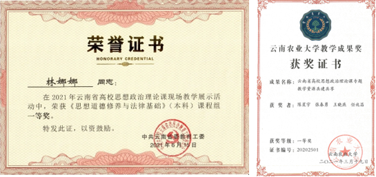 “以赛促教”,激发教师积极性、主动性、创造性。2017-2021年,获云南省思想政治理论课教学比赛获一等奖4人,二等奖4人,三等奖5人。获全国高校思想政治理论课教学展示一等奖2人。